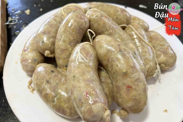 🍖 Thịt giò heo bó luộc – mềm, ngọt, đậm đà: Phần thịt chân giò được bó chắc tay, luộc vừa tới để giữ độ ngọt tự nhiên, bì giòn sật, nạc mềm không khô. Khi cắt lát mỏng, từng miếng thịt hé lộ vân mỡ xen thịt cực bắt mắt và hấp dẫn, chấm cùng mắm tôm là “chuẩn bài”.