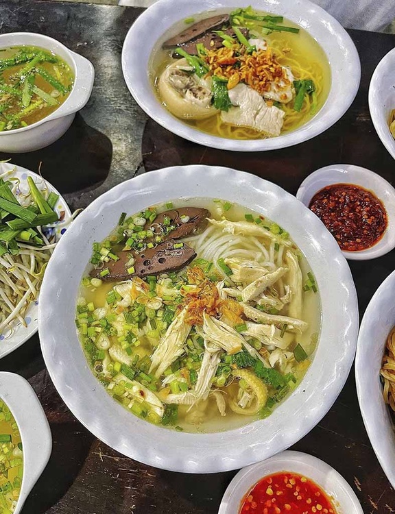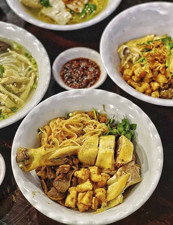 🍲 Hủ Tiếu Mì Gà – Món ăn quen thuộc, già trẻ đều thích. Nước lèo ngọt thanh, bổ dưỡng, ăn no mà không lo tăng cân. Topping hấp dẫn: lòng mề gà, trứng non, tóp mỡ giòn rụm, ăn kèm sa tế cay thơm.