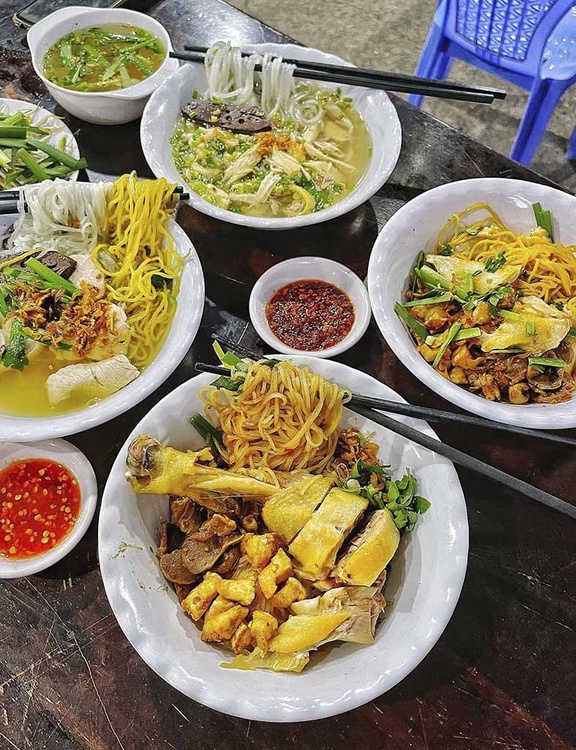 🥢 Mì Trộn – Mì dai mềm trộn sốt đậm đà, tóp mỡ vàng giòn, sa tế cay nồng. Ăn kèm topping đa dạng (gà ta, bò, hải sản, thập cẩm) và trứng lòng đào béo ngậy. Thưởng thức cùng tô nước súp nóng hổi, đặc biệt ngon trong ngày mưa hay se lạnh.