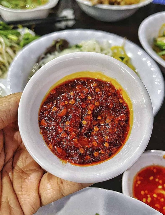 Mì trộn bò + Tóp mỡ + Sa tế |