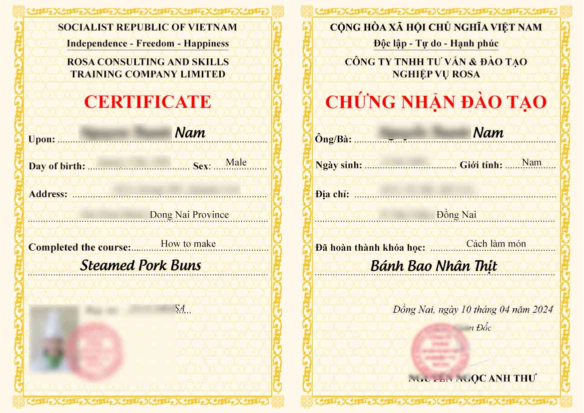 Cấp chứn nhận hoàn thành khóa học "song ngữ Việt-Anh"