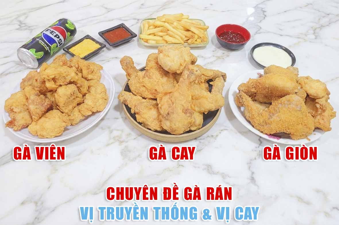 🍖Từ các thương hiệu nổi tiếng như KFC, Lotteria đến mô hình quán mang đi đều rất dễ bán, dễ kinh doanh. Gà rán thường dùng kèm tương ớt, tương cà, khoai tây chiên và nước ngọt, phù hợp mọi lứa tuổi, từ ăn vặt đến mở quán kinh doanh.