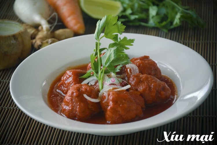 Bánh mì xíu mại là món ăn sáng thơm ngon,đậm đà. Bánh mì giòn xốp cùng xíu mại dai dai, béo ngậy, không quá đặc như thịt viên lại có thêm hương vị đặc biệt từ nước sốt cà chua thơm ngon.