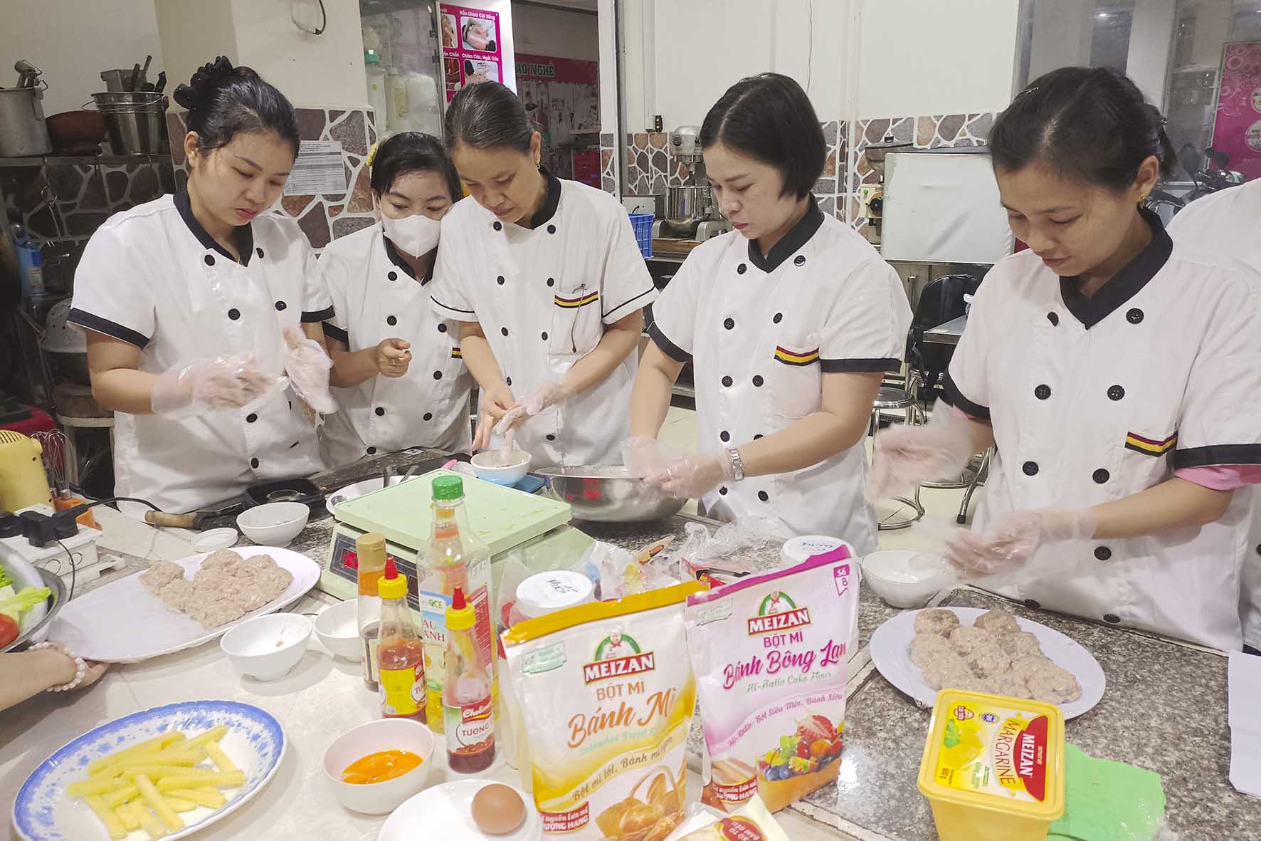 🎨 Hoàn thiện sản phẩm: Học cách sắp xếp và trình bày các lớp nhân một cách hài hòa, đẹp mắt, chia khẩu phần ăn chuẩn cho từng ổ bánh mì.