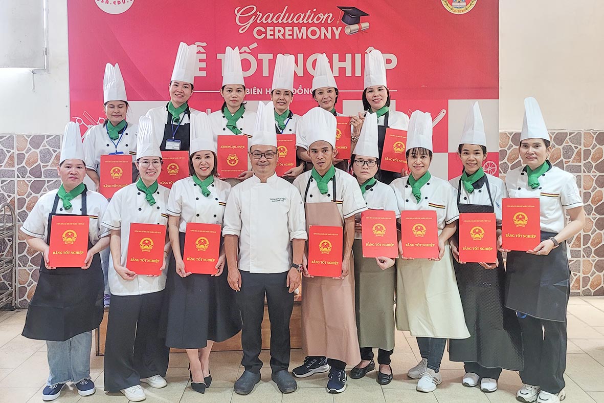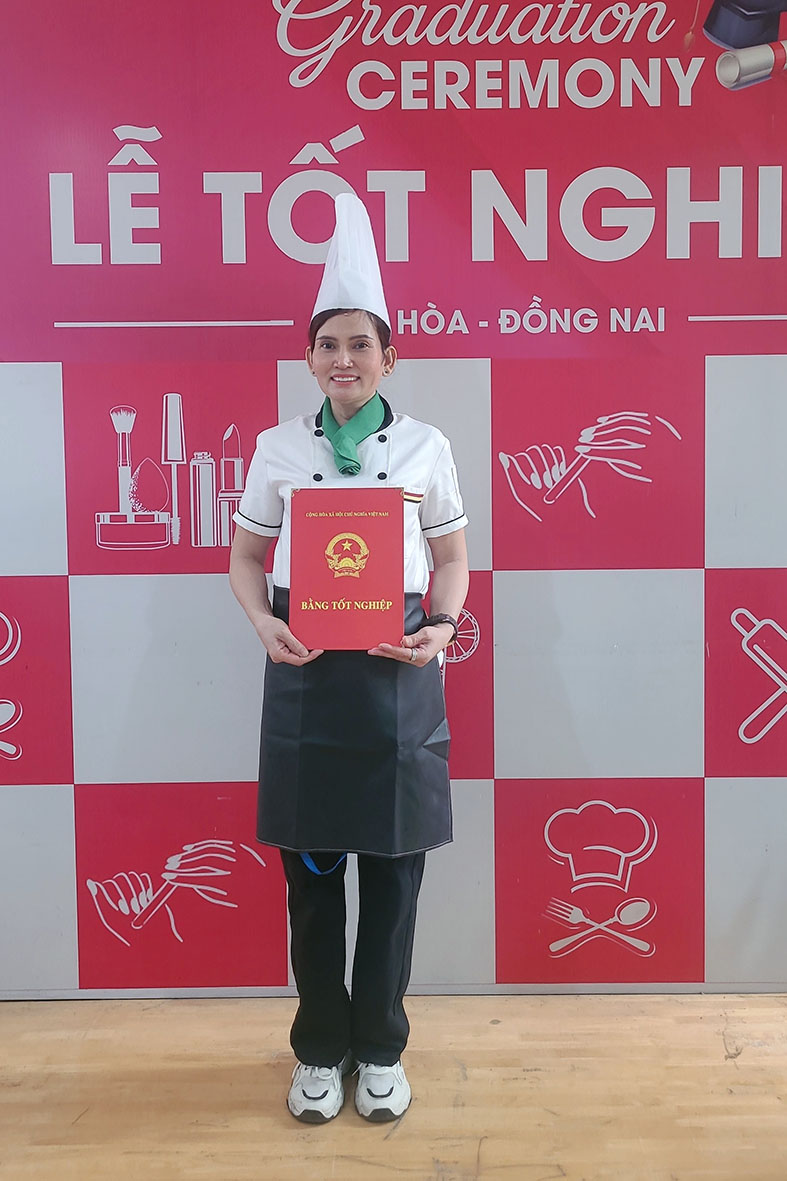 📚 Chị Thanh đã lựa chọn theo học ngành Kỹ Thuật Ẩm Thực, bao gồm Đầu bếp – Làm bánh – Pha chế. Đặc biệt, chị được hỗ trợ học theo diện miễn 100% học phí từ Bảo Hiểm Thất Nghiệp. Đây là chương trình dành cho người lao động sau khi thất nghiệp đăng ký học nghề và được Trung tâm Dịch vụ Việc làm giới thiệu đến Trường Dạy Nghề Rosa.. Đây là một cơ hội quý báu giúp chị tiếp cận kiến thức và kỹ năng nghề nghiệp bài bản, mở ra hướng đi mới trong sự nghiệp.