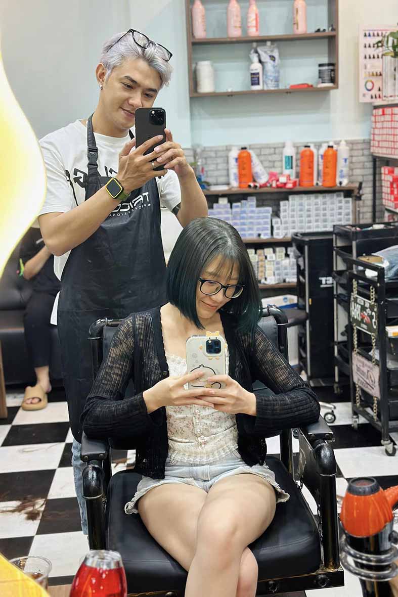 - Cắt tóc lá bầu & sấy kiểu cúp phồng