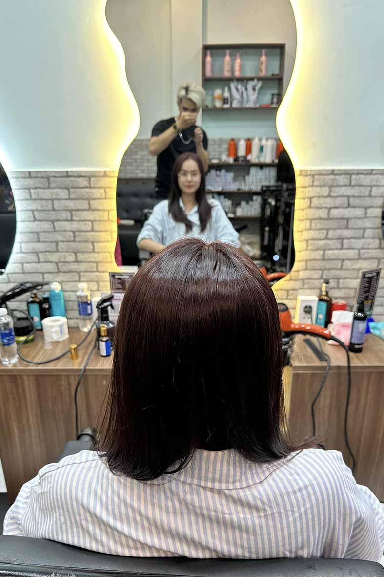 - Tóc ngang chuối tầng thấp/tầng cao & sấy cúp ngọn
