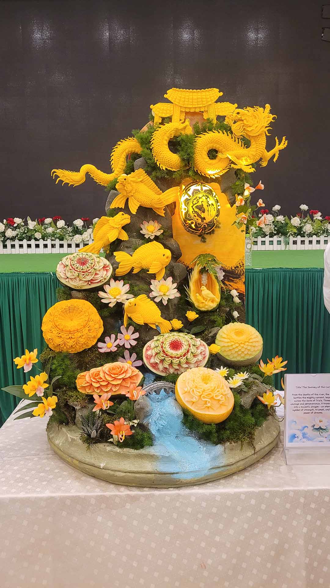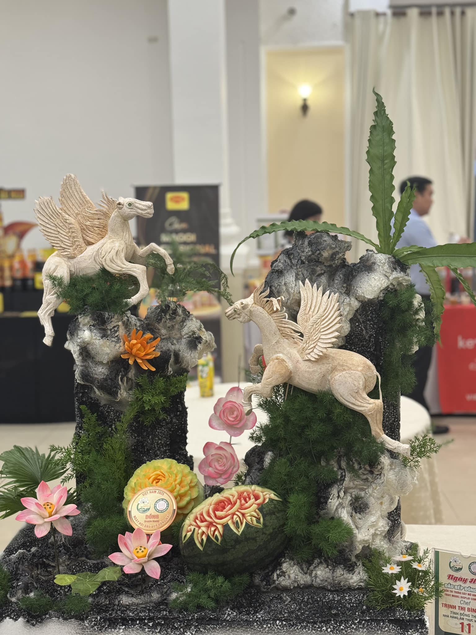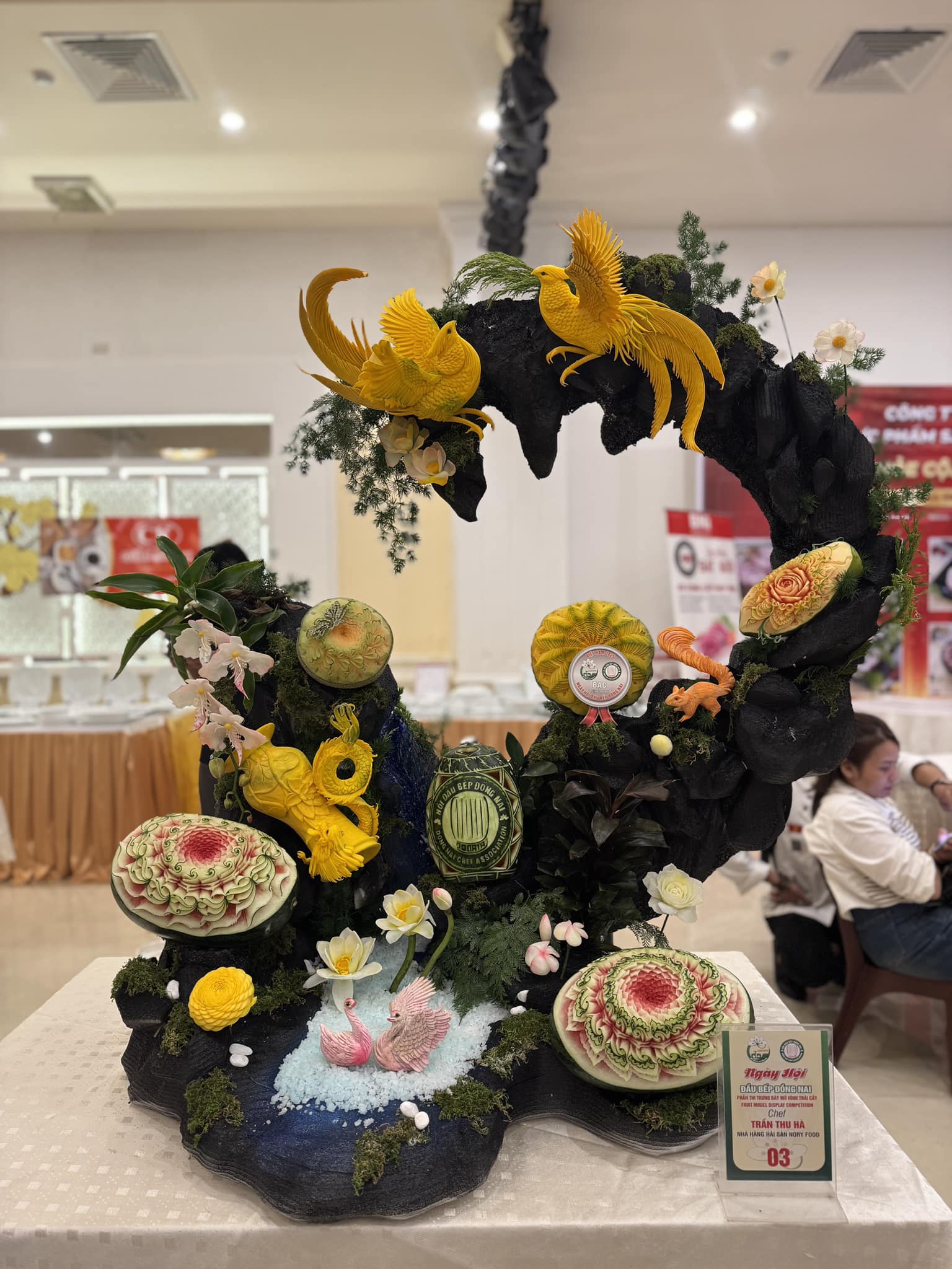 Điểm nhấn nghệ thuật độc đáo của Ngày hội Đầu bếp Đồng Nai chính là cuộc thi điêu khắc, tỉa rau củ quả – nơi các đầu bếp, nghệ nhân phô diễn tài hoa, sự sáng tạo và đôi tay điêu luyện.