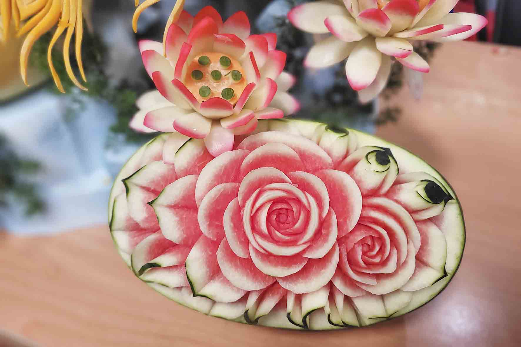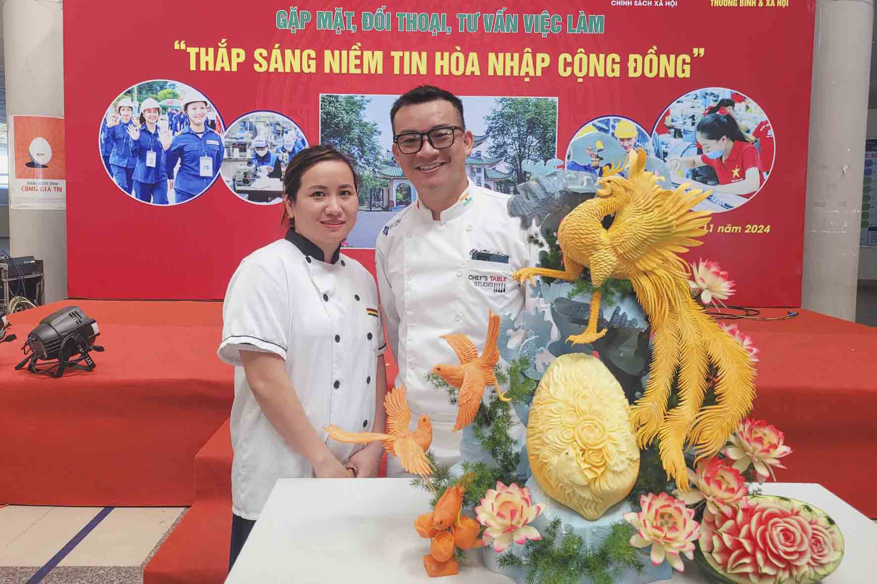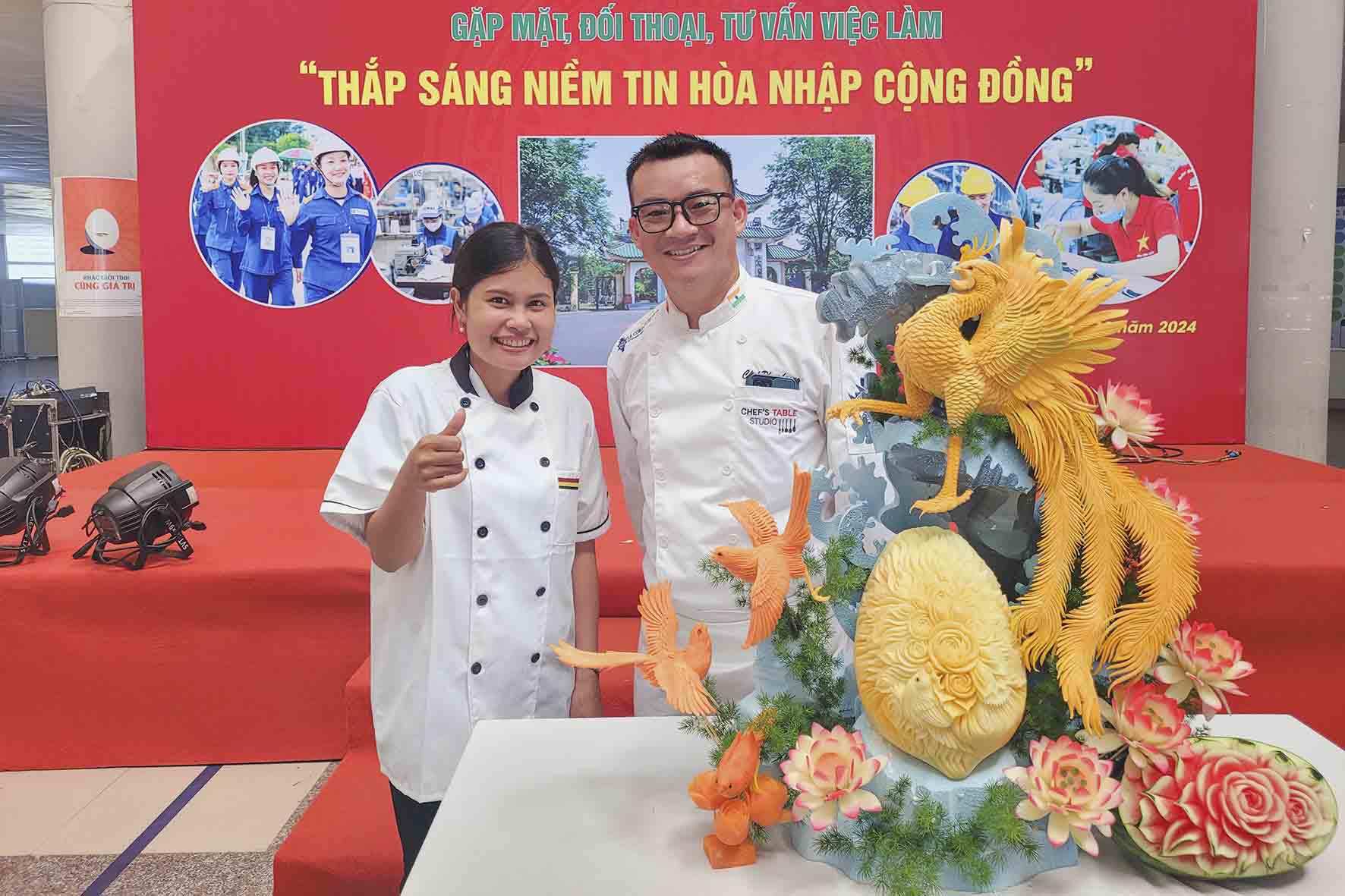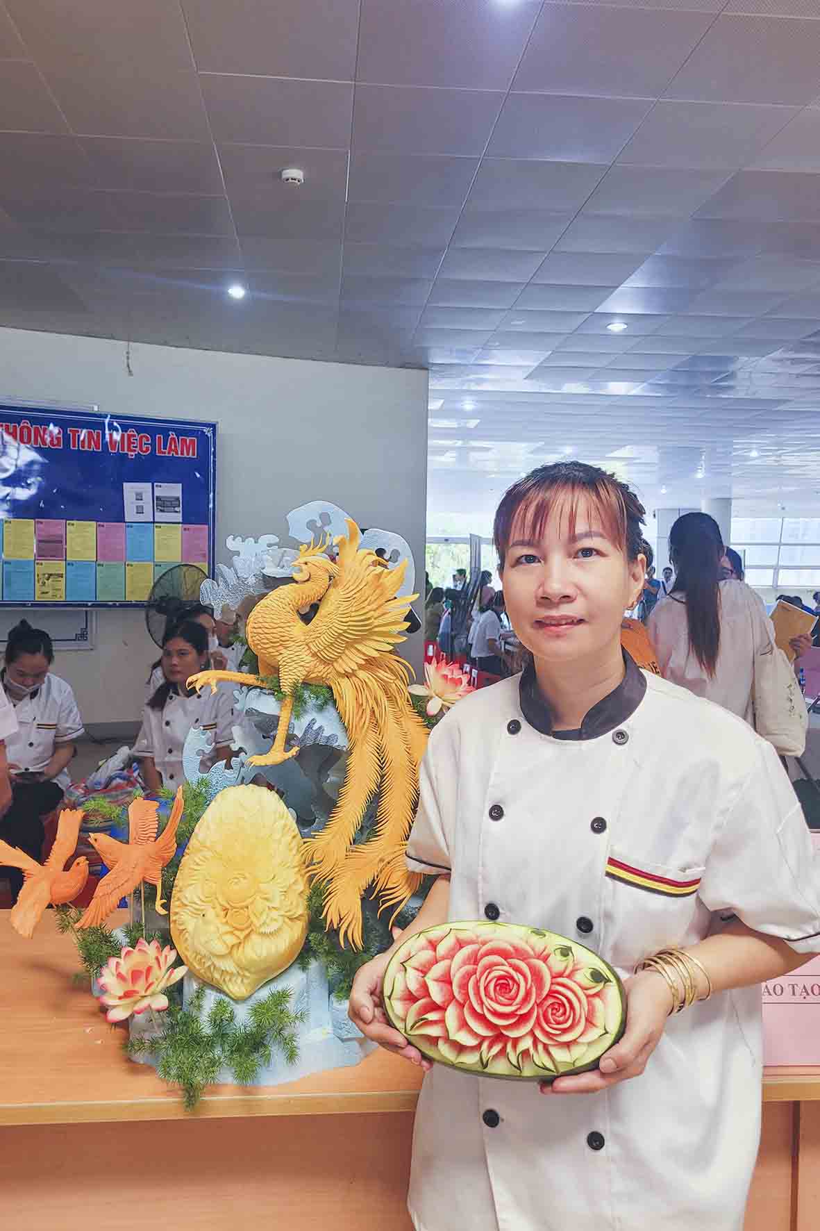 Dạy nghề Rosa cũng góp mặt trong chương trình này với buổi quảng diễn lên mô hình chim phượng hoàng của lớp CẮT TỈA CỦA QUẢ với sự hướng dẫn của Nghệ nhân tỉa Phạm Hoàng.