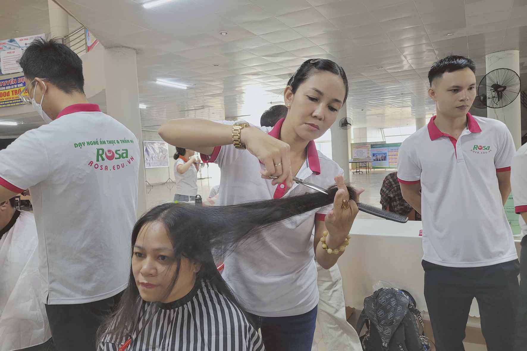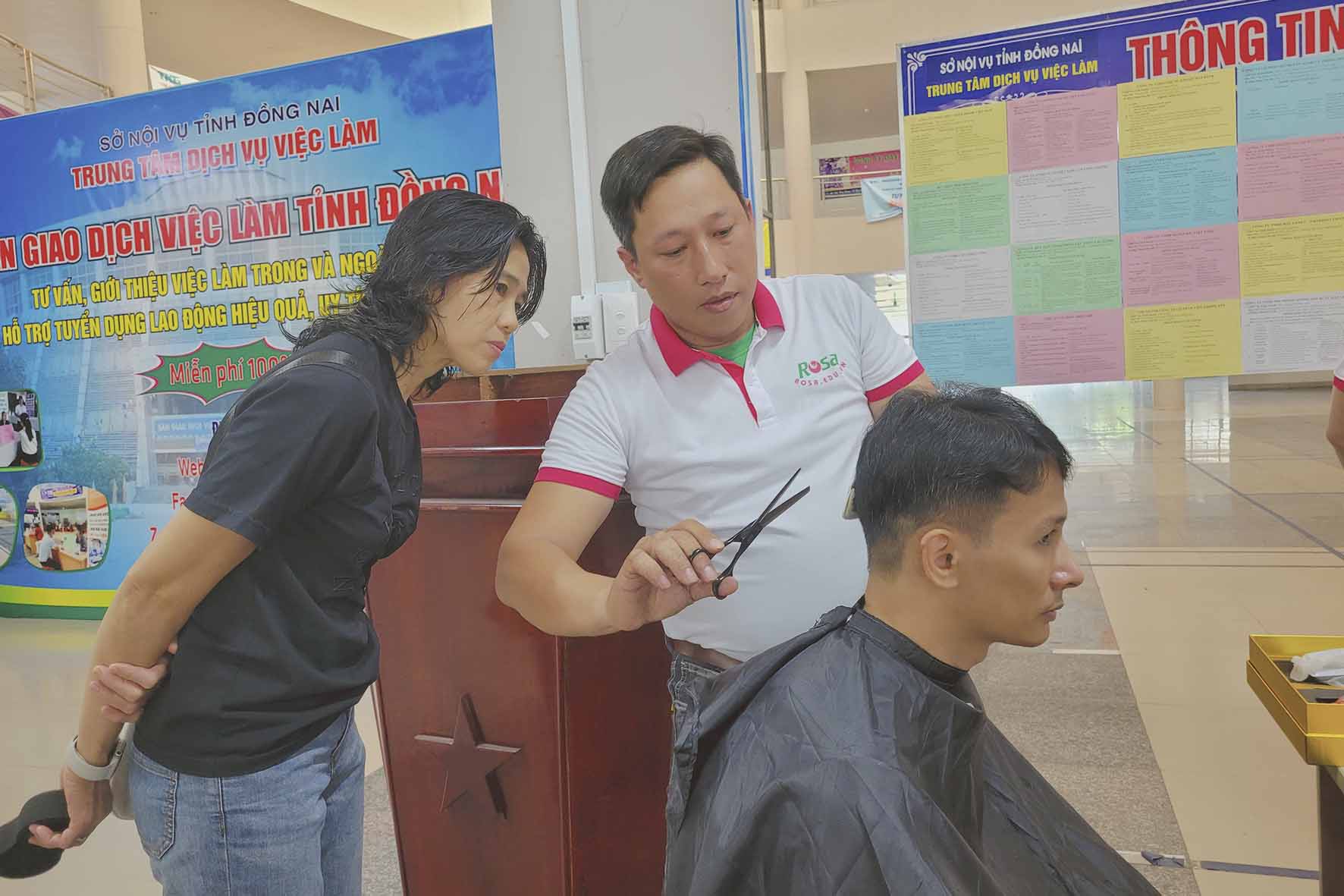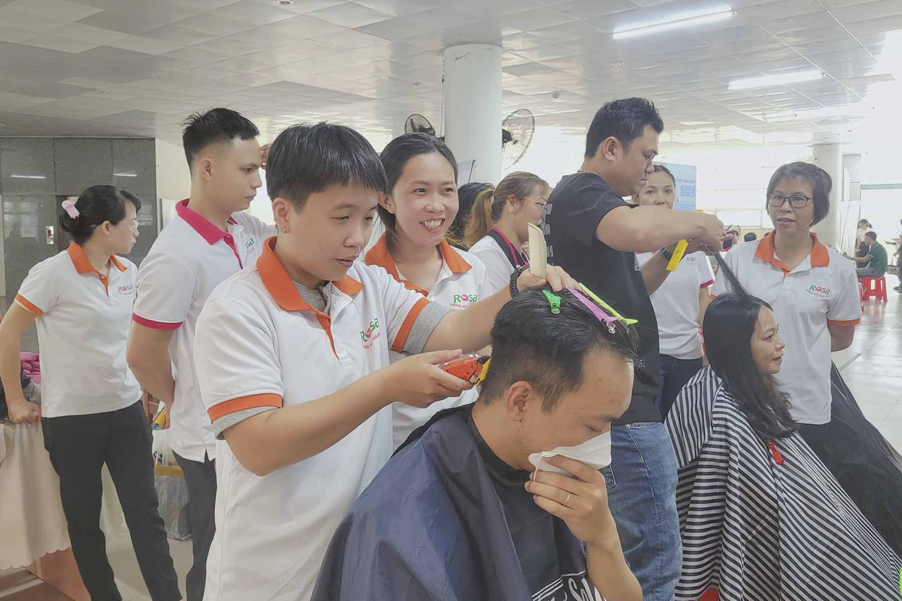 Hưởng ứng phong trào việc làm, Dạy Nghề Rosa tham gia ngày hội với hoạt động "#Cắt_tóc_miễn_phí" nhầm giúp học viên có cơ hội được thực hành nhiều hơn trên đầu thật, giúp tự tin hơn trong quá trình học cũng như thực tiễn.
