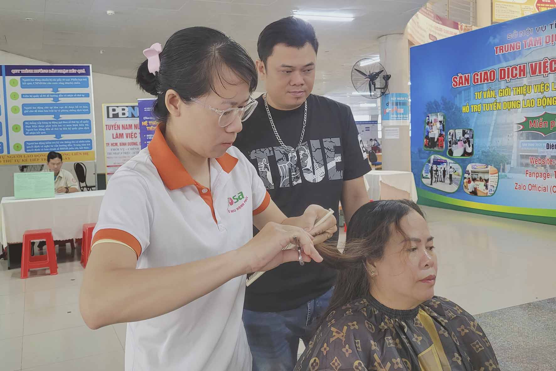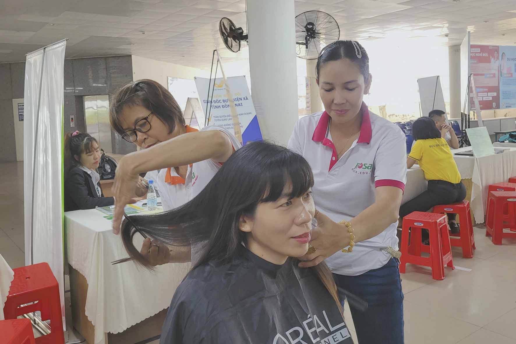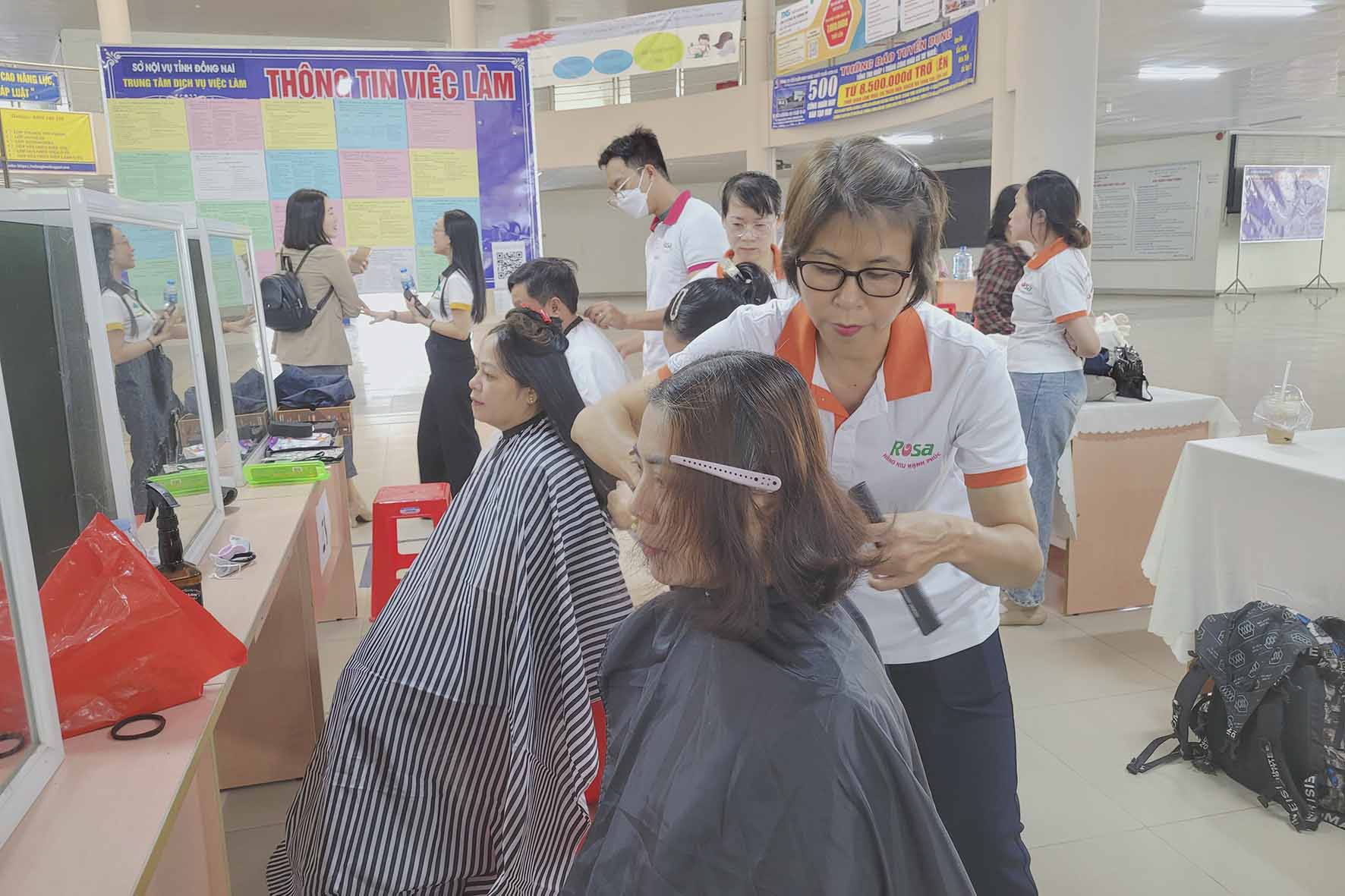 Hưởng ứng phong trào việc làm, Dạy Nghề Rosa tham gia ngày hội với hoạt động "#Cắt_tóc_miễn_phí" nhầm giúp học viên có cơ hội được thực hành nhiều hơn trên đầu thật, giúp tự tin hơn trong quá trình học cũng như thực tiễn.