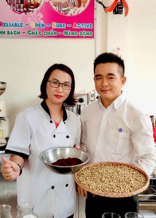 Chị HẠNH và Chị CHI trong khóa học Pha chế rang xay cà phê