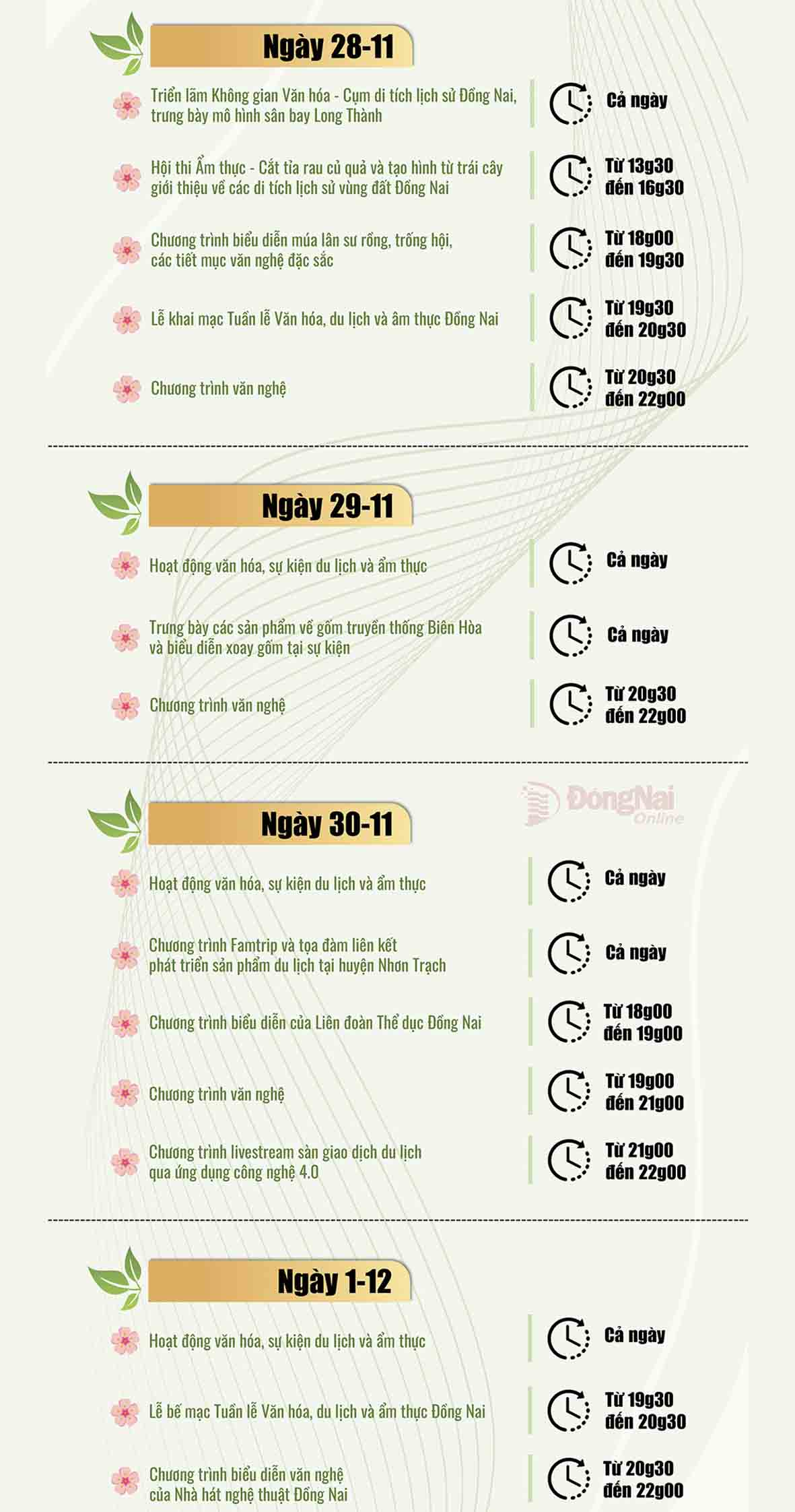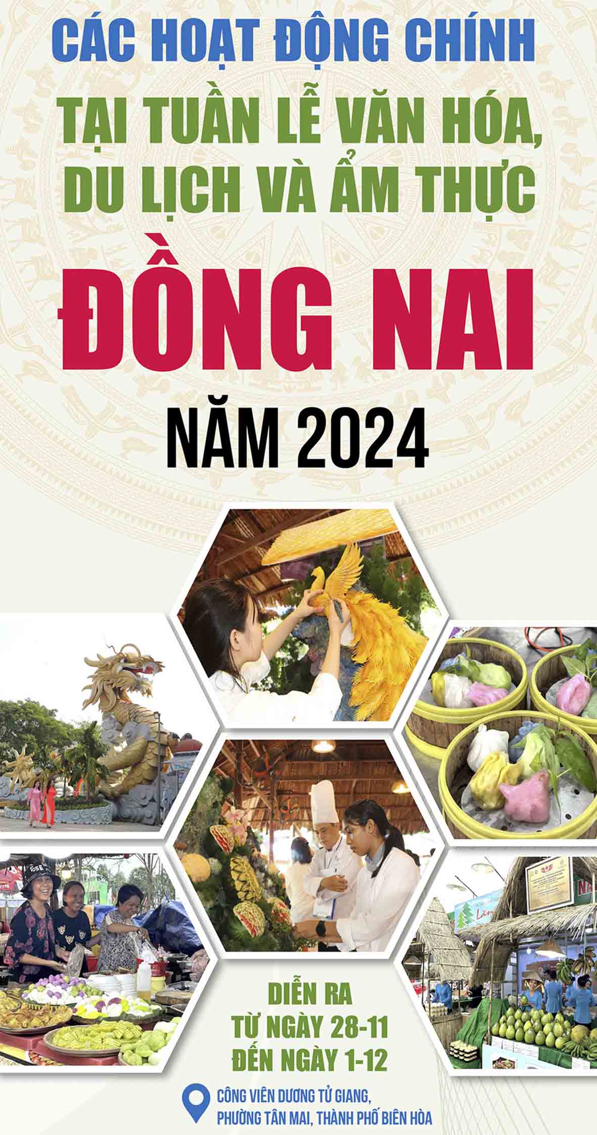 Tuần lễ Văn hóa, du lịch và ẩm thực Đồng Nai năm 2024 sẽ diễn ra từ ngày 28-11 đến ngày 1-12 tại công viên Dương Tử Giang (TP Biên Hòa, Đồng Nai)