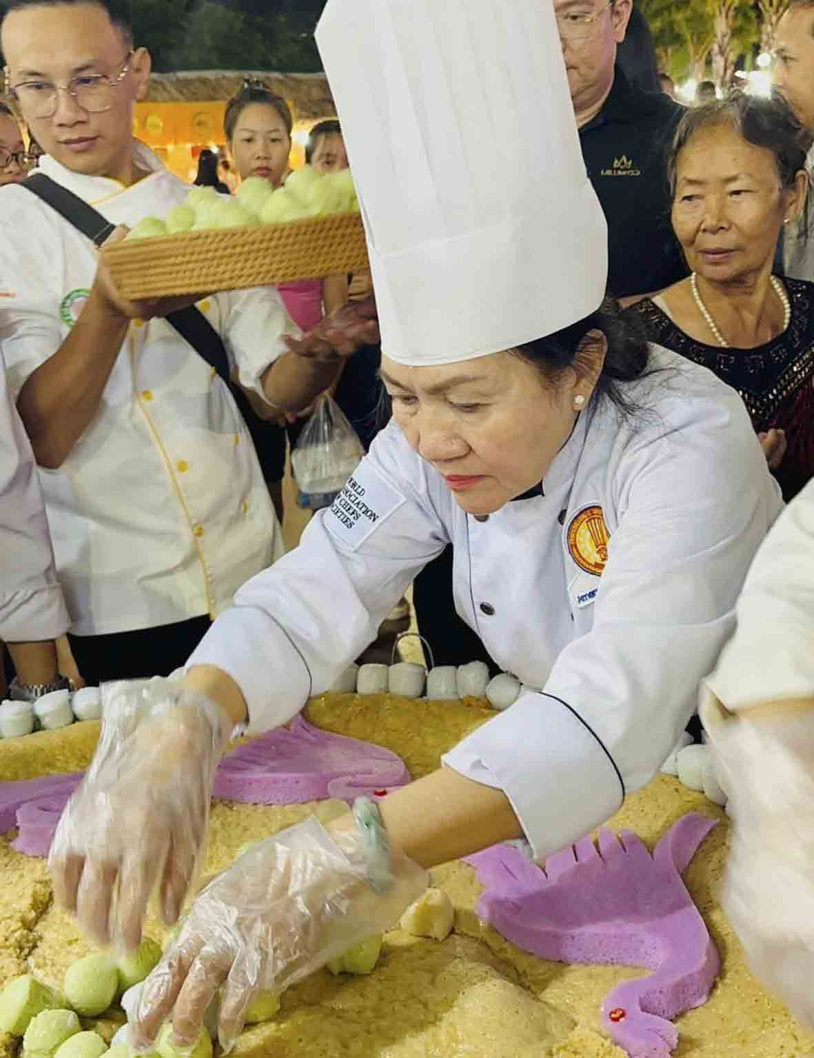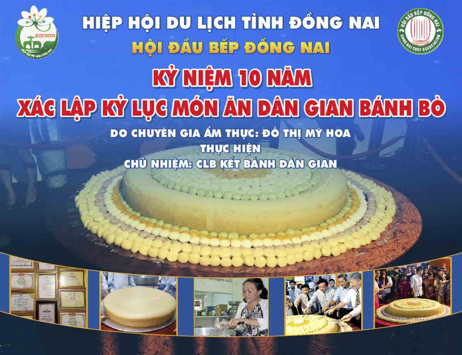 Tại tuần lễ văn hóa ẩm thực lần này, xác lập kỷ lục món ăn dân gian: BÁNH BÒ - Thực hiện bởi Chuyên gia ẩm thực Đỗ Thị Mỹ Hoa - Chủ nhiệm CLB Kết Bánh Dân Gian