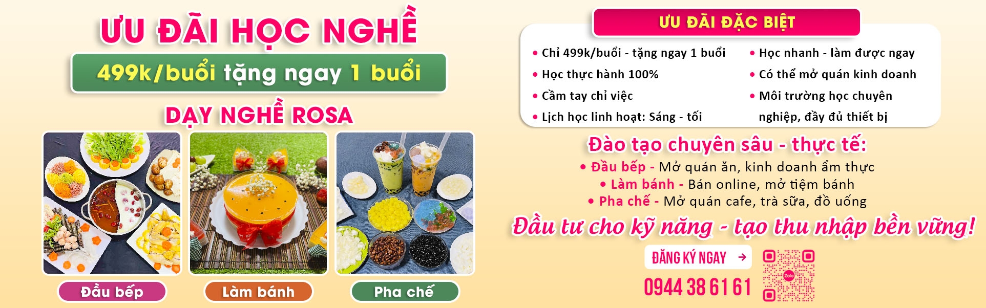ƯU ĐÃI HỌC NGHỀ CỰC HOT 2026 - CHỈ VỚI 499K/BUỔI (TẶNG NGAY 1 BUỔI) TẠI DẠY NGHỀ ROSA