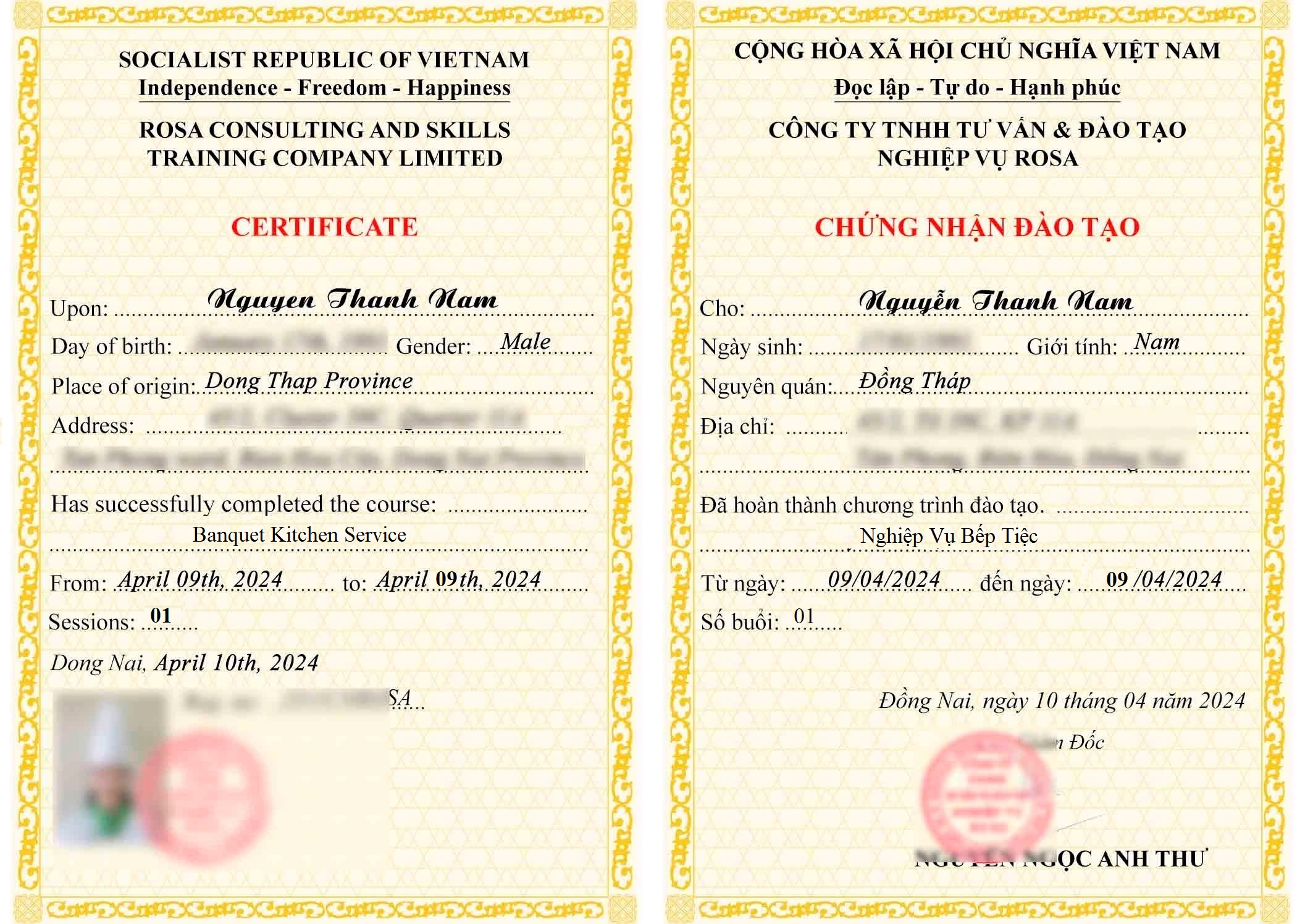 | Nghiệp Vụ Bếp Tiệc | 8 buổi (32 giờ) |
